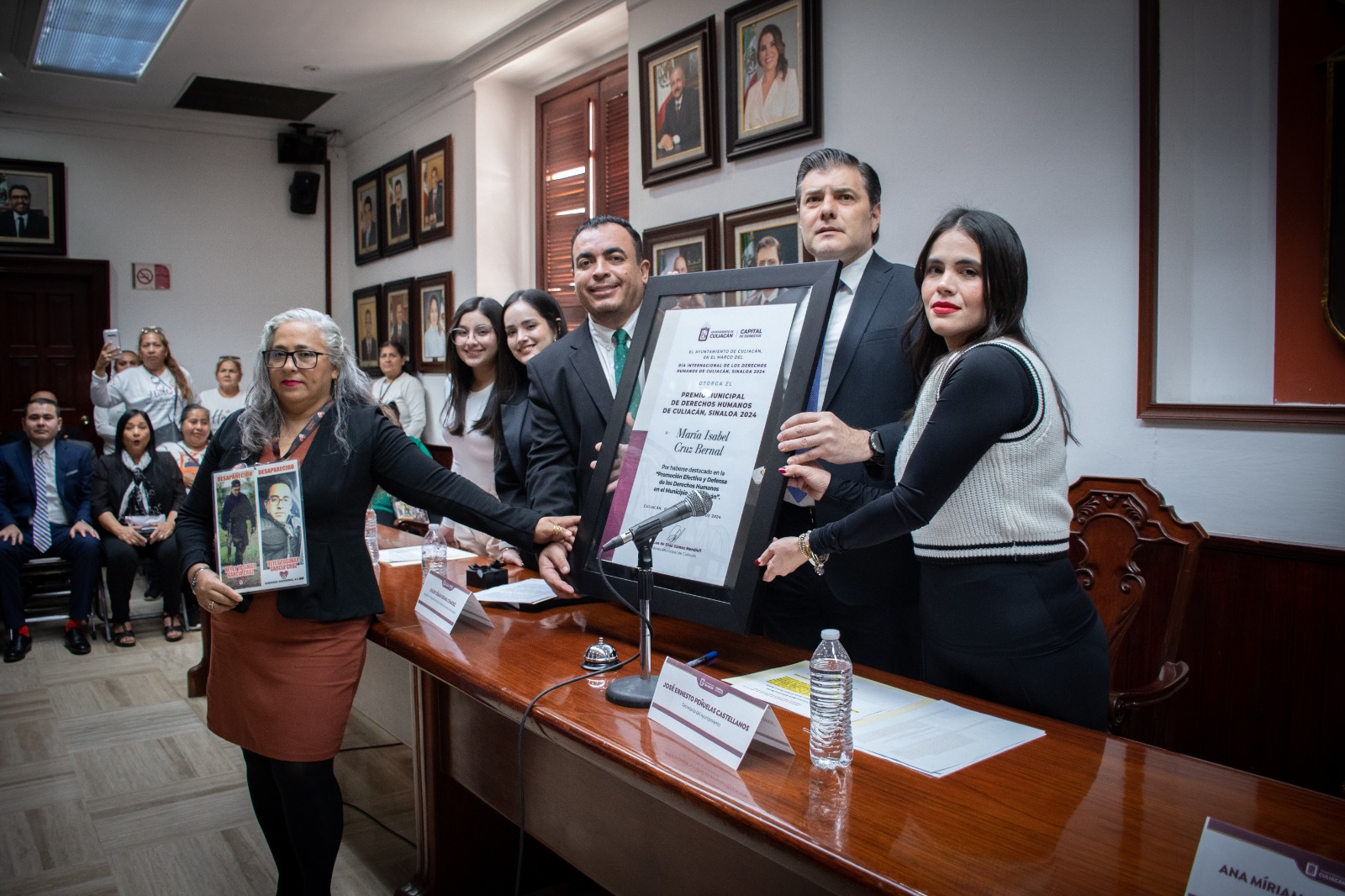Culiacán, Sin., a 17 de diciembre de 2024.- En Sesión Solemne de Cabildo, la destacada activista María Isabel Cruz Bernal recibió el Premio Municipal de Derechos Humanos de Culiacán, en reconocimiento a su incansable labor a favor de las madres de personas desaparecidas.