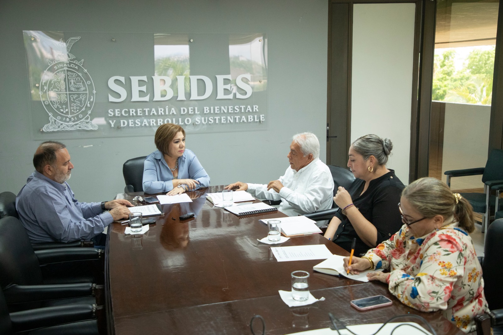 Culiacán, Sinaloa a 07 de agosto de 2024. La secretaria de Bienestar y Desarrollo Sustentable María Inés Pérez Corral y Héctor Modesto Félix Carillo, director general de Instituto Sinaloense de Desarrollo Social -ISDESOL- se reúnen con Evangelina Llanes Carreón, presidenta de Juan José Ríos y Faustino Torres, presidente de Eldorado con el propósito de proveerles de capacitación y darles las herramientas necesarias que tanto él como ella puedan tomar las mejores decisiones para sus respectivas administraciones.